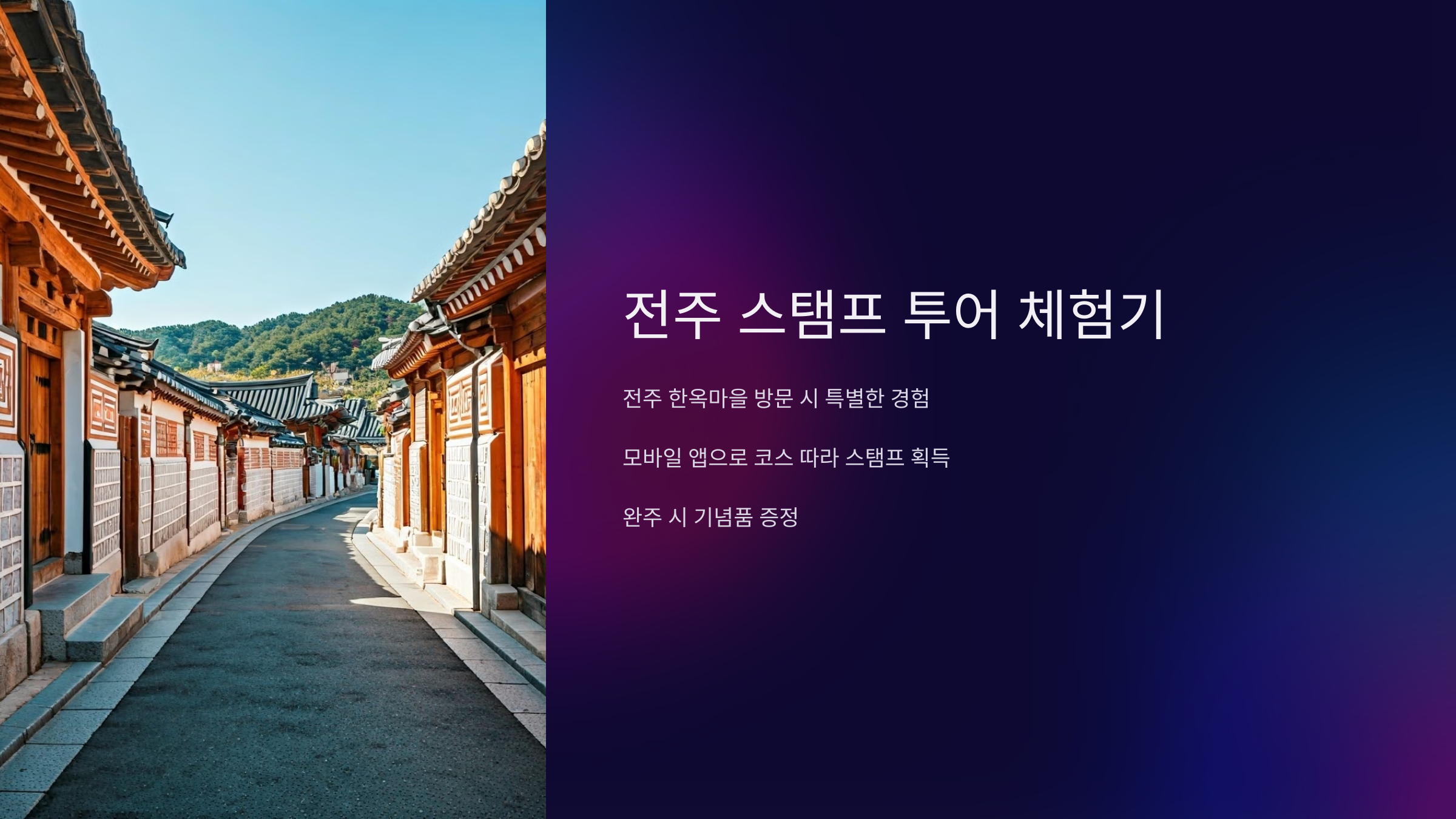 전주 한옥마을을 방문하면서 특별한 경험을 하고 싶다면, 스탬프 투어를 추천드려요. 저도 최근에 참여해봤는데, 기대 이상으로 즐거웠습니다. 😊