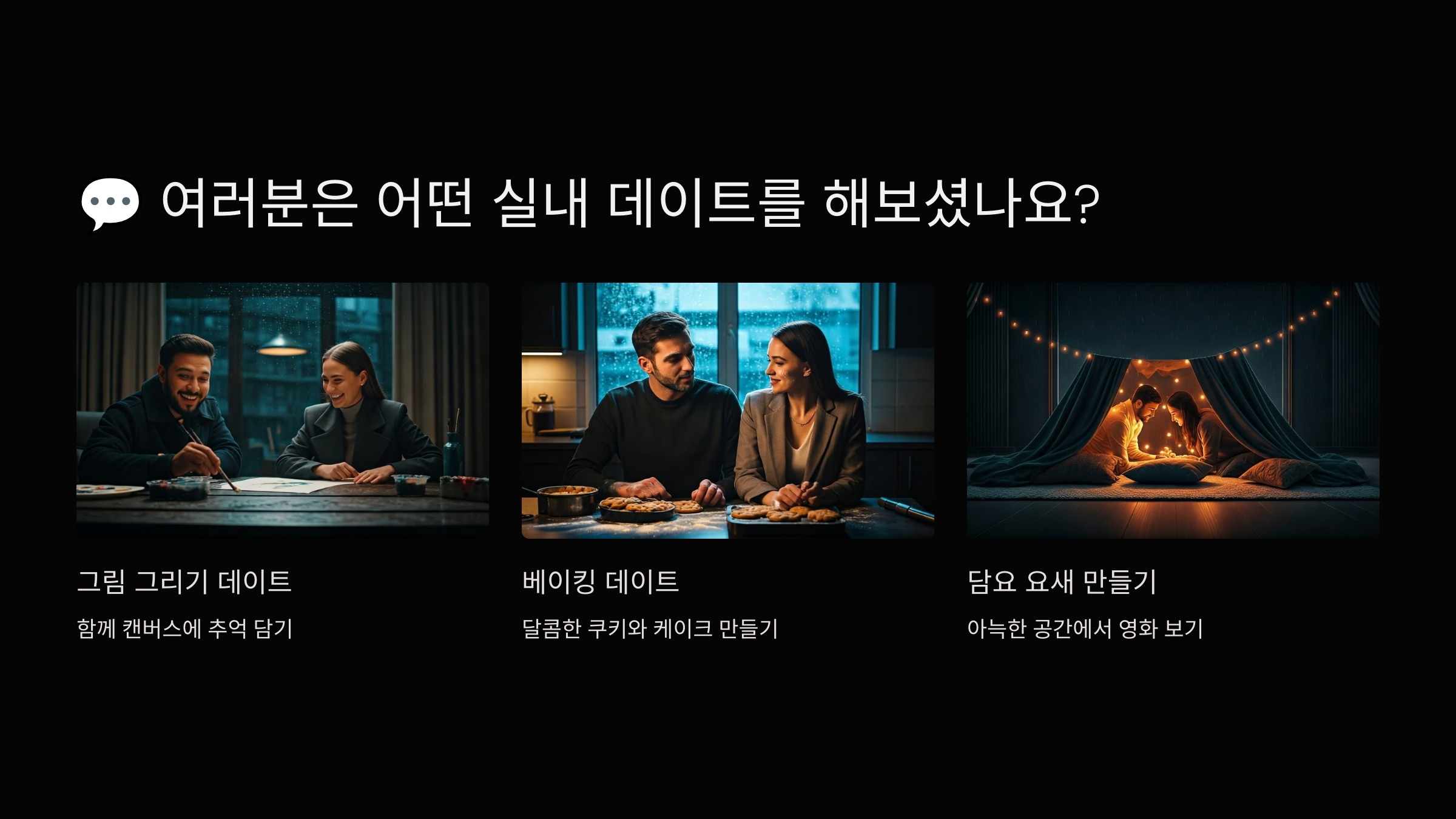 💬 여러분은 어떤 실내 데이트를 해보셨나요?