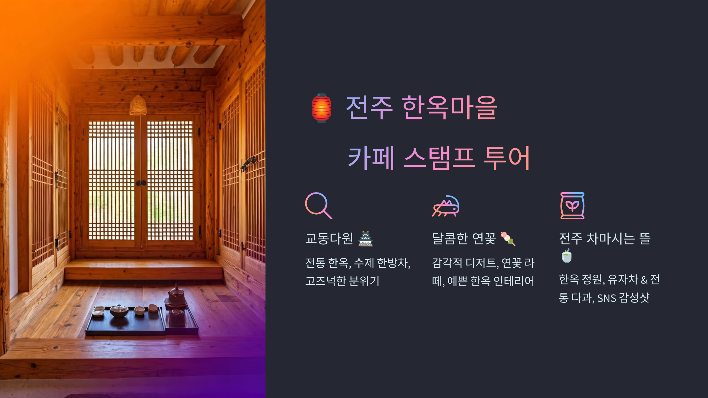 | 12_🎁 전주 스탬프 투어 혜택 및 인기 카페 총정리 (0) | 2025.03.17 |