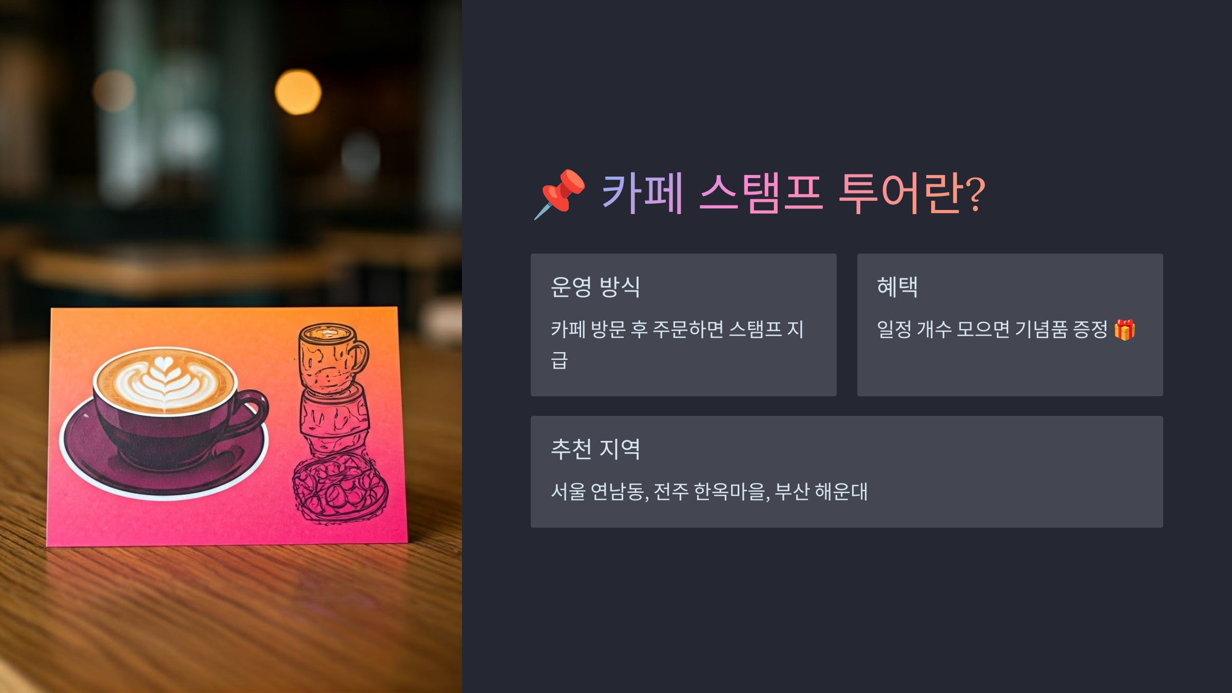 | 15_서울, 부산, 전주에서 즐기는 카페 스탬프 투어 코스 (0) | 2025.03.17 |