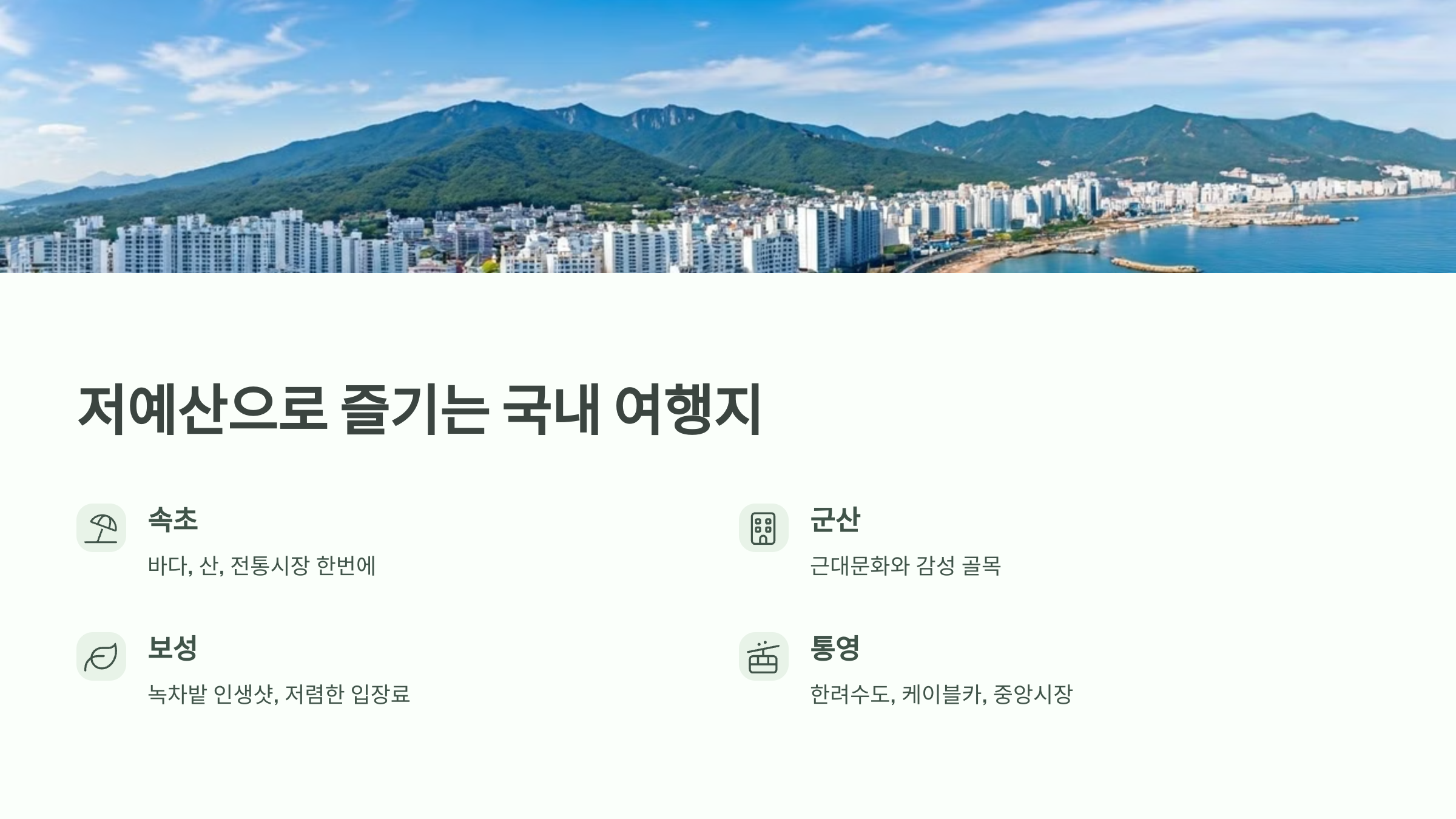 - 저예산으로도 즐길 수 있는 국내 여행지