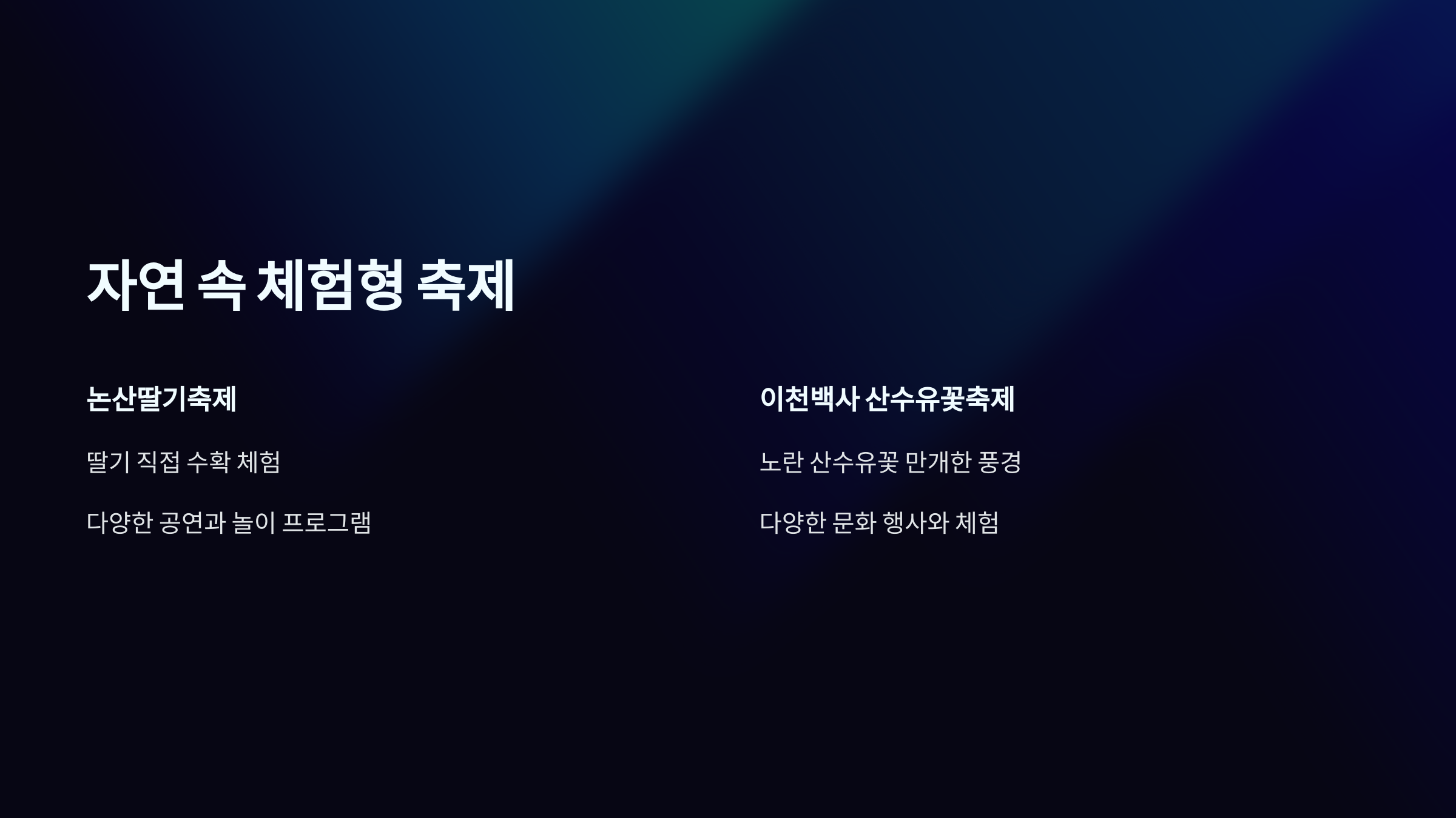 | 223-서울 근교 주말 나들이 추천 축제 모음 🎉 (0) | 2025.04.02 |