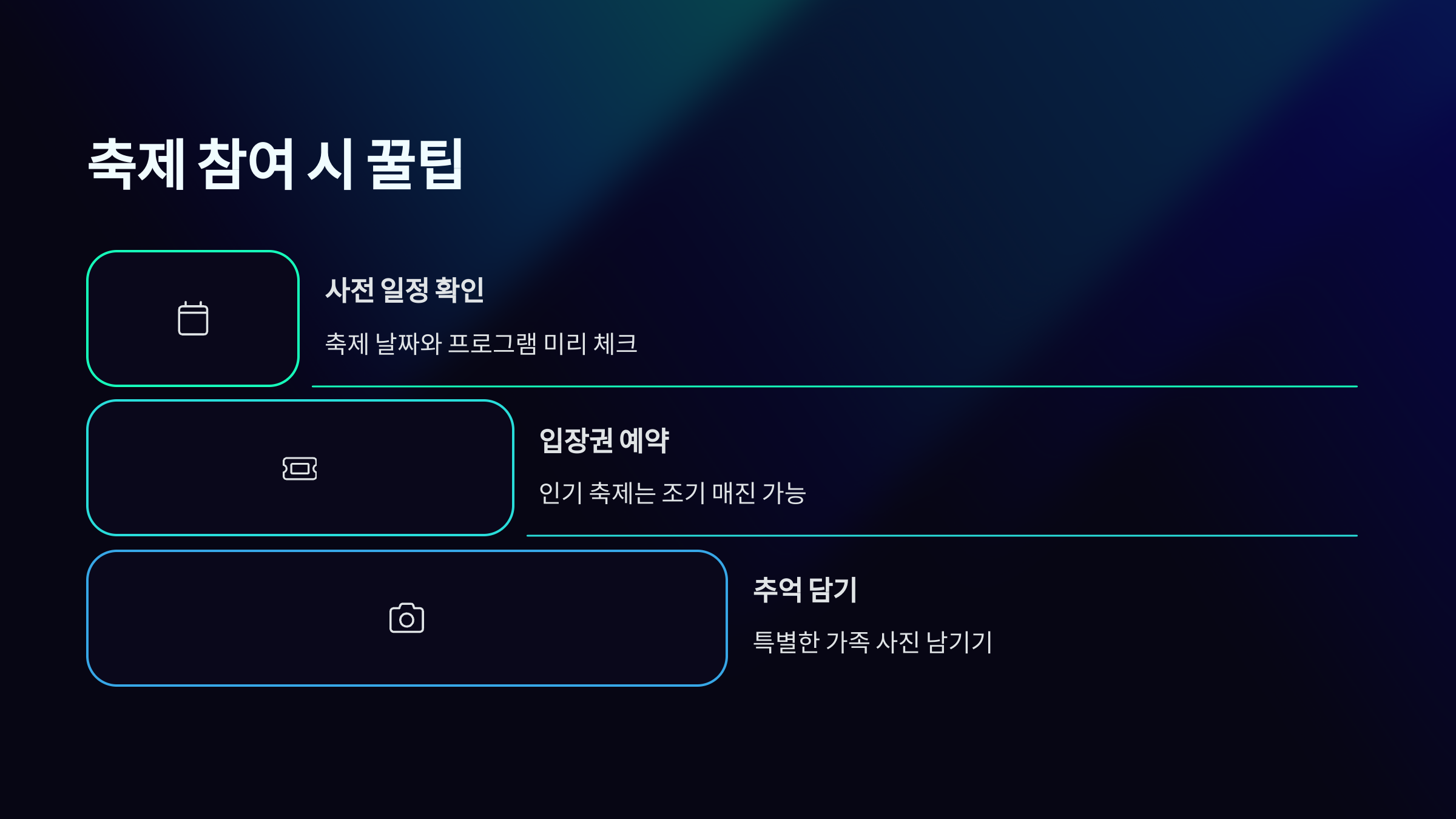 아이들과 함께하는 여행은 특별한 추억을 만들어줍니다. 위에 소개한 축제들을 참고하여 가족만의 소중한 시간을 계획해보세요! 😊
