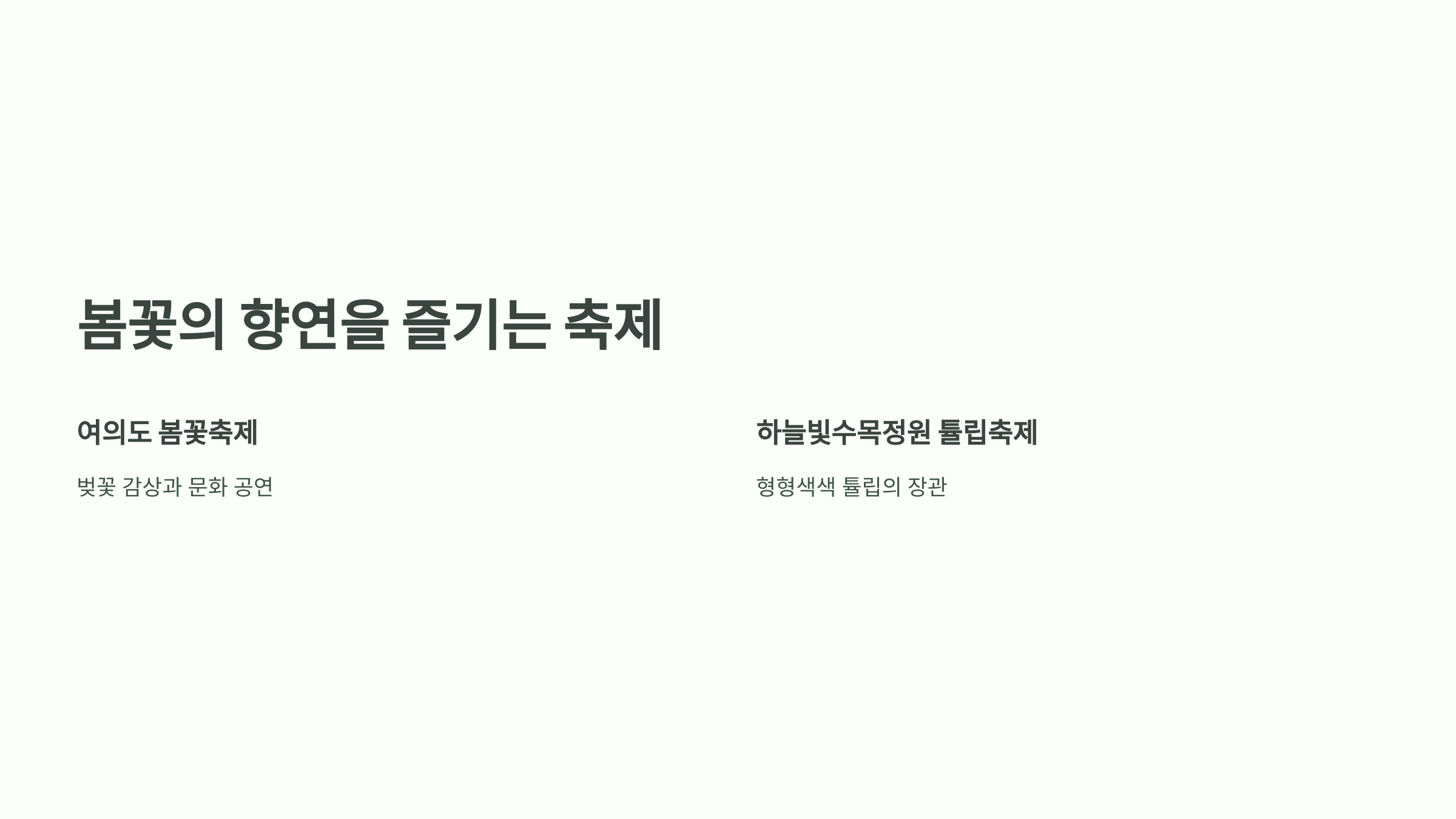 | 222-봄에 꼭 가봐야 할 지역 축제 Best 7 🌸 (0) | 2025.04.02 |