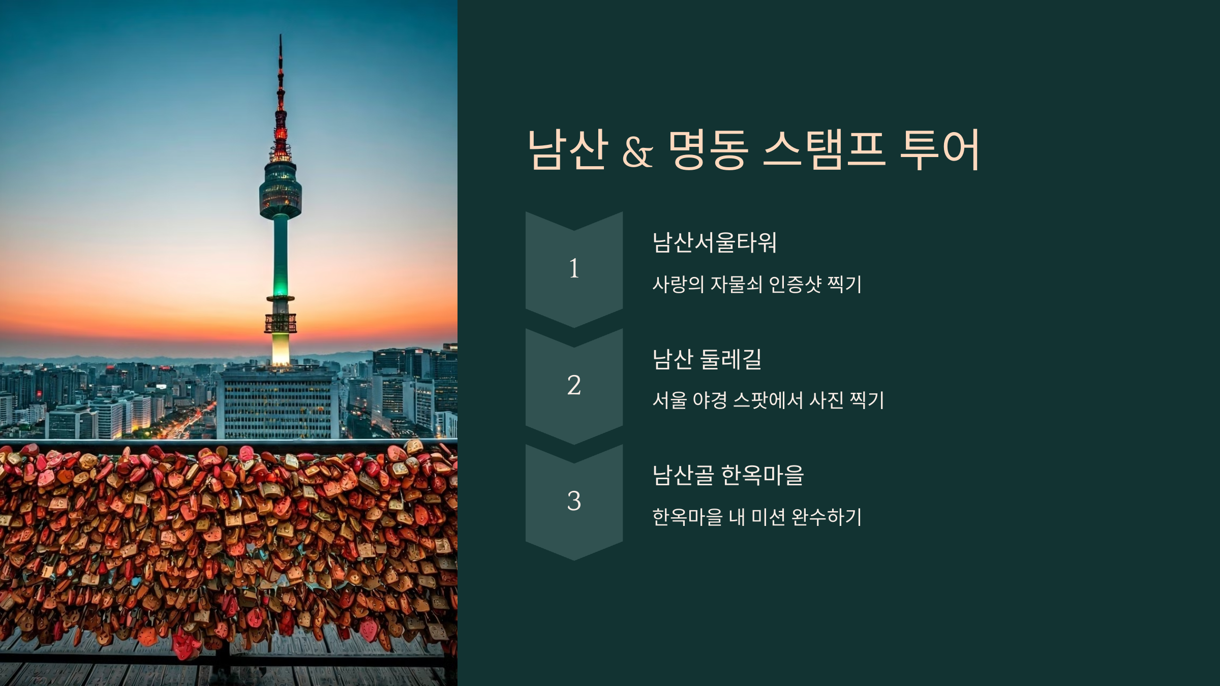 ⭐ 스탬프 혜택: 3개 이상 모으면 남산 기념 배지 증정! 🎁