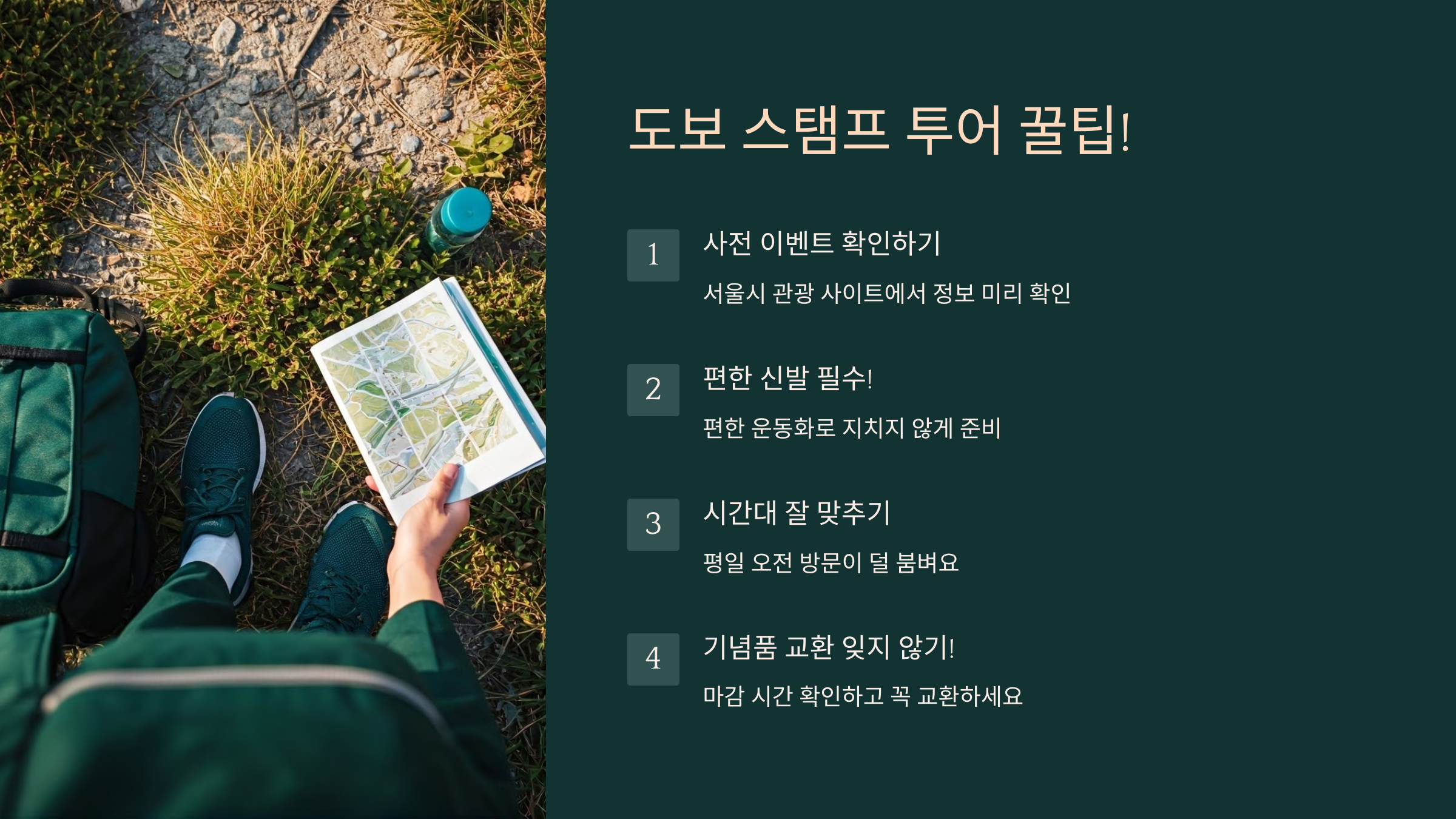 걷는 즐거움과 추억을 동시에 남길 수 있는 스탬프 투어, 지금 바로 도전해 보세요! 🚀