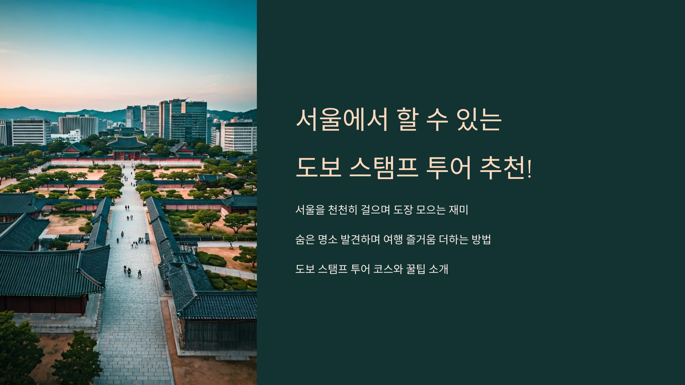 서울을 천천히 걸으며 도장을 모으는 재미! 도보 스탬프 투어는 서울의 숨은 명소를 발견하며 여행의 즐거움을 더하는 최고의 방법이에요. 이번 글에서는 서울에서 할 수 있는 도보 스탬프 투어 코스와 꿀팁을 소개해 드릴게요! 🏆