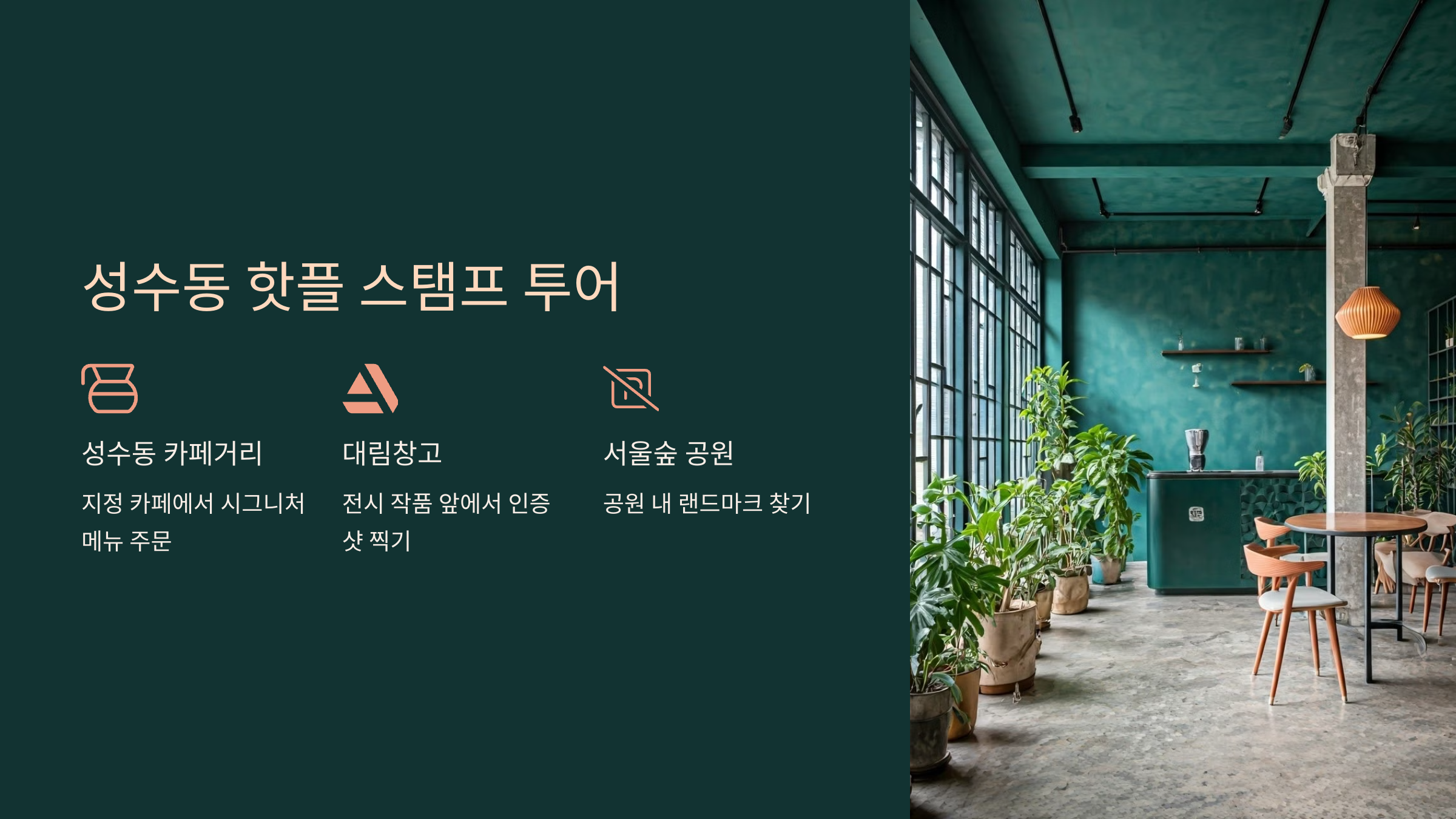 ⭐ 스탬프 혜택: 3개 이상 모으면 성수동 한정 엽서 증정! 🎁