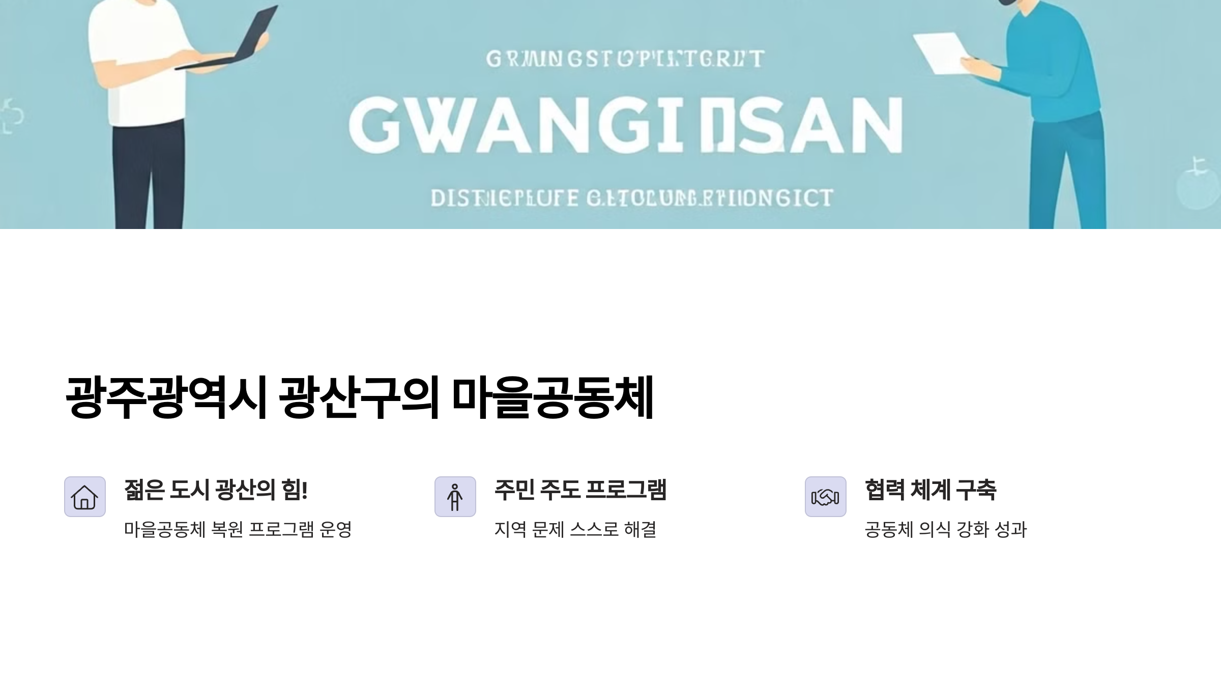 광주광역시 광산구에서는 '젊은 도시 광산의 힘!'이라는 슬로건 아래, 마을공동체를 복원하고 주민자치를 활성화하는 다양한 프로그램을 운영했습니다. 이를 통해 주민들은 스스로 지역 문제를 해결하고, 공동체 의식을 강화하는 데 큰 성과를 거두었습니다. 🏡