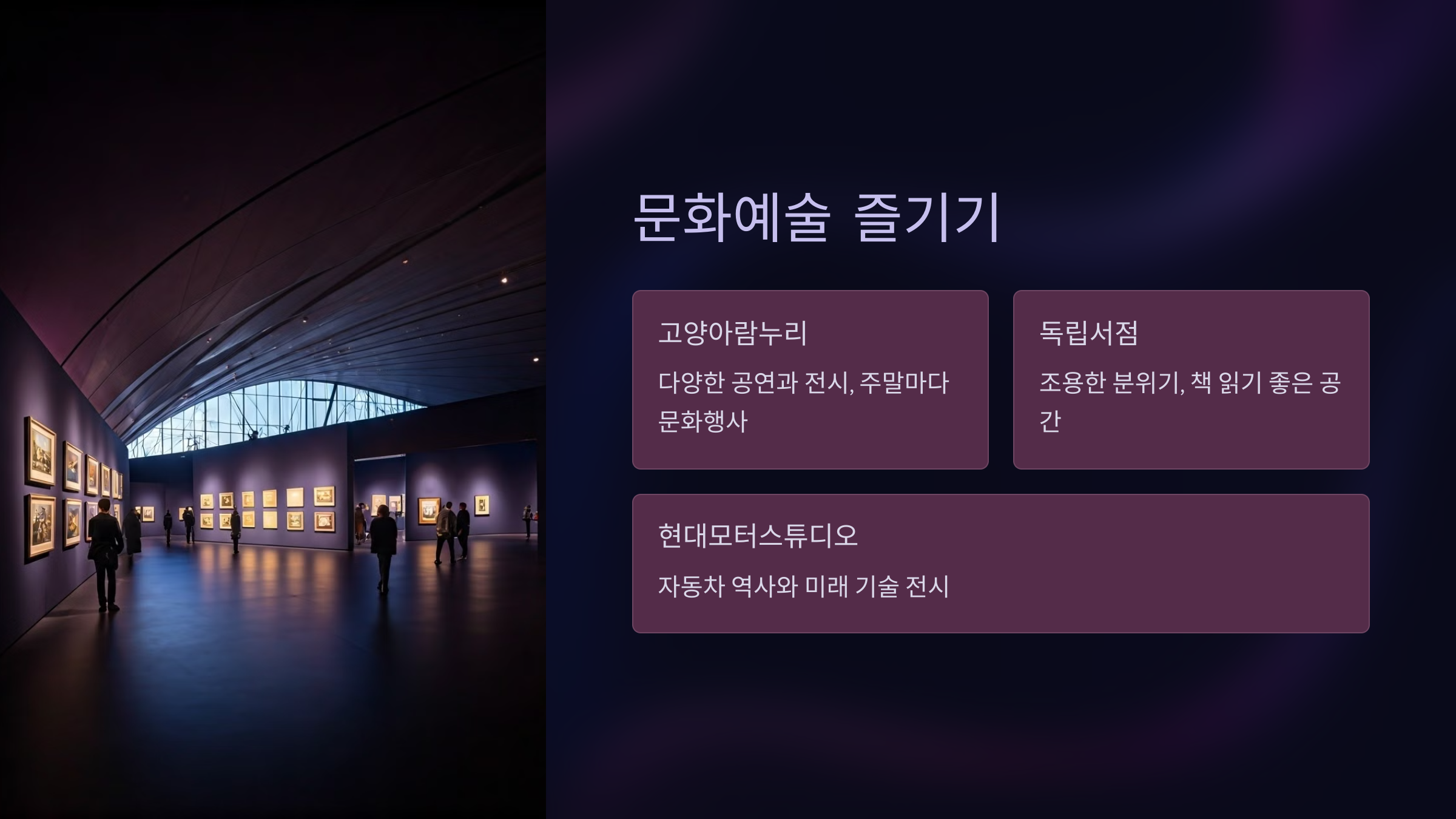 🎨 혼자서도 즐거운 고양시 주말 문화생활 가이드
