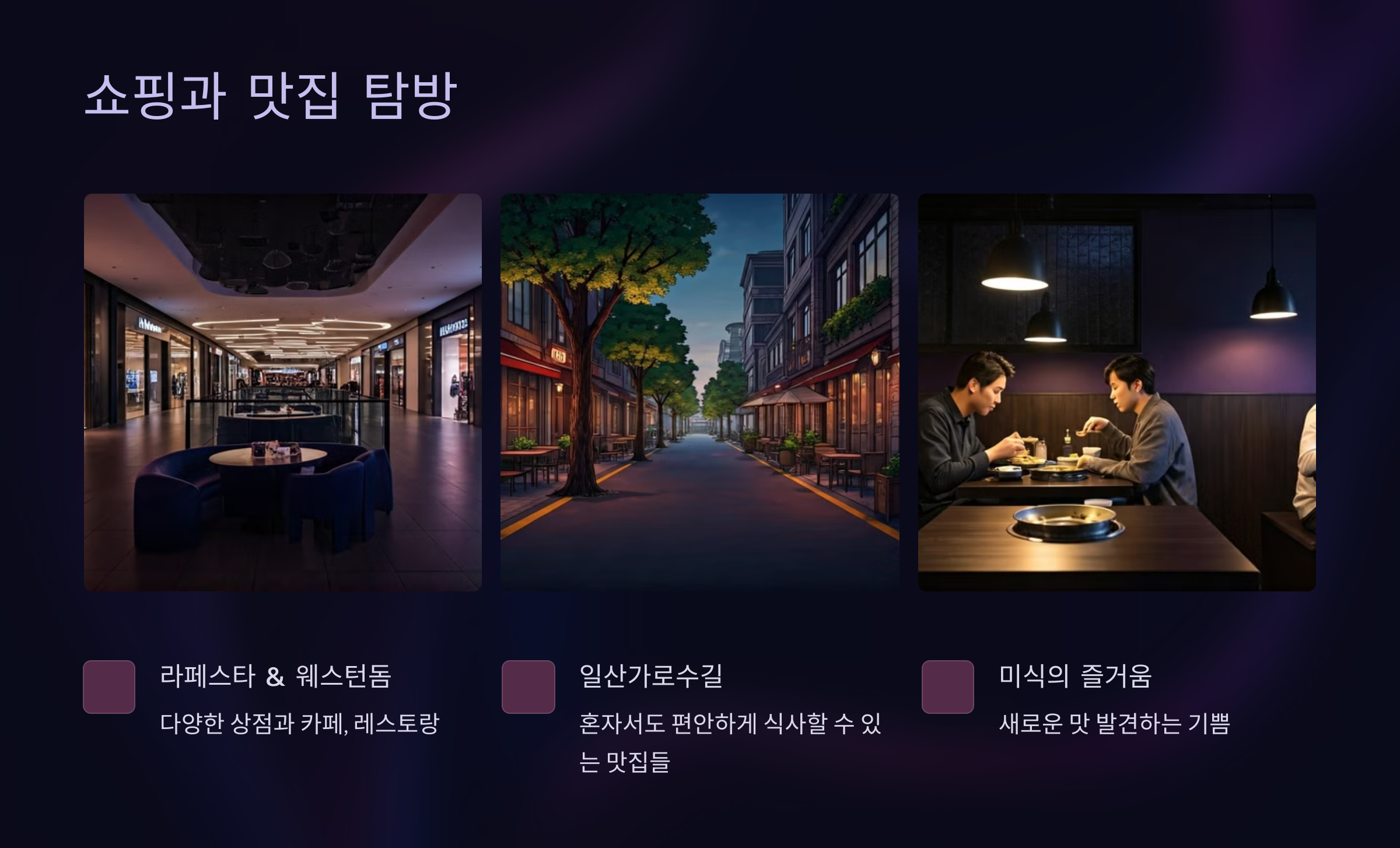 쇼핑과 맛집 탐방을 동시에 즐길 수 있는 라페스타와 웨스턴돔은 혼자서도 충분히 즐길 수 있는 장소예요. 다양한 상점과 카페, 레스토랑이 모여 있어 취향에 맞는 곳을 찾아보는 재미가 있답니다. 더 알아보기