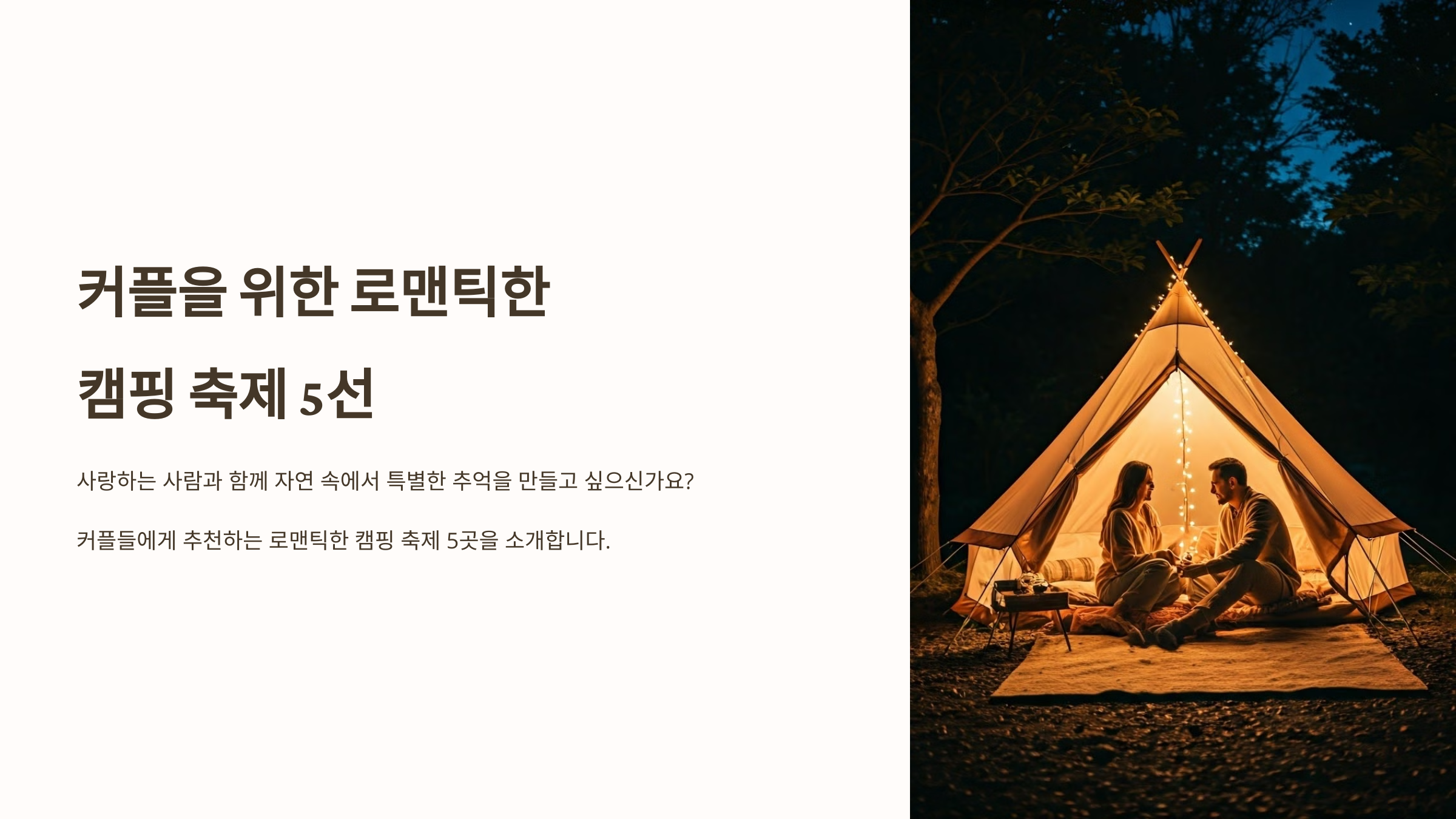 🏕️ 커플을 위한 로맨틱한 캠핑 축제 5선