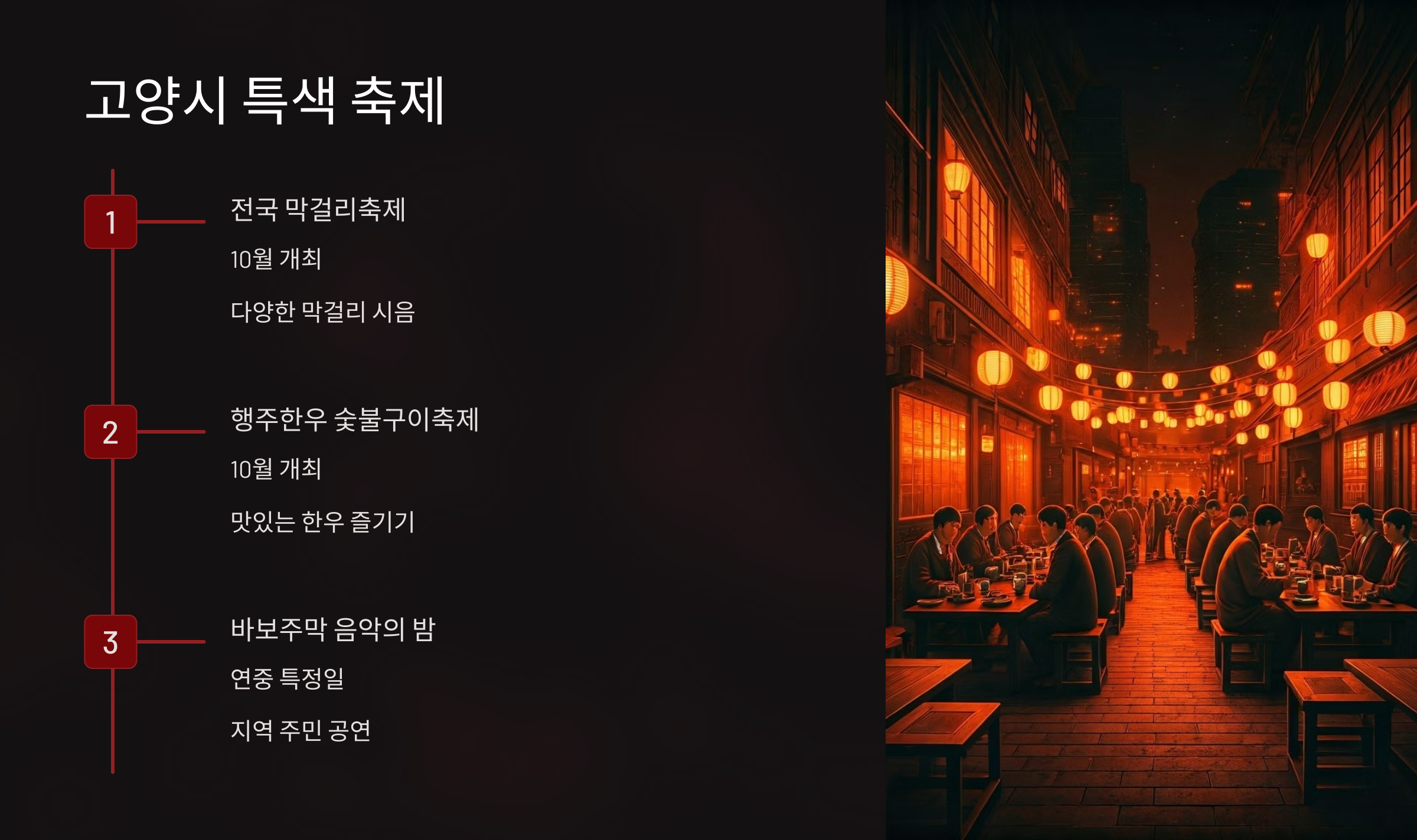추천 캠핑장: 고양시 인근의 캠핑장에서 머물며 축제의 흥겨움을 만끽해보세요.