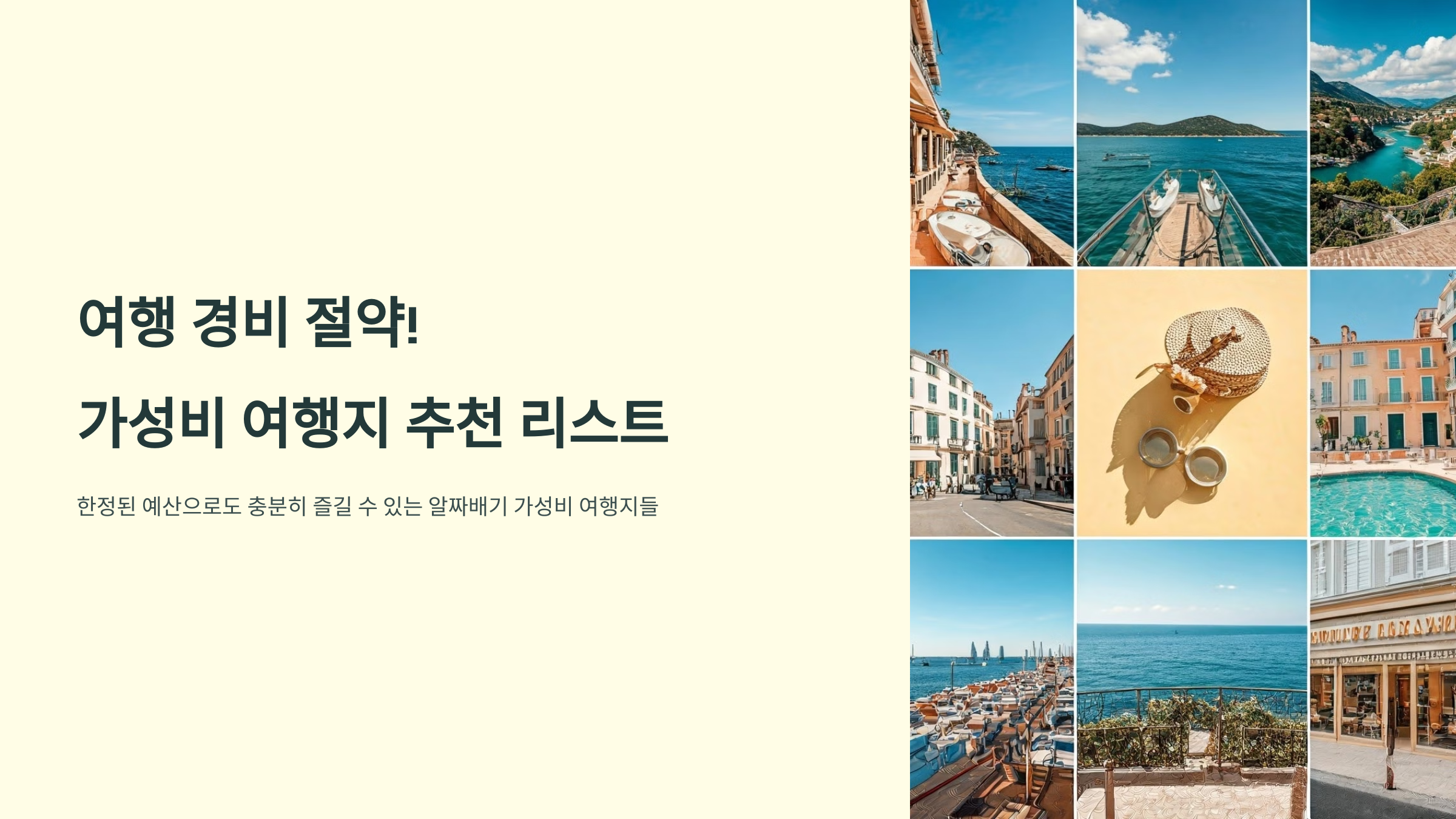 여행 경비 절약! 가성비 여행지 추천 리스트 한정된 예산으로도 충분히 즐길 수 있어요! 알짜배기 가성비 여행지들을 모아봤습니다 ✈️🌍목차여행 준비의 경제적 중요성국내 가성비 여행지 추천동남아시아 가성비 여행지 리스트유럽에서도 가성비 여행은 가능하다숙소와 교통비 절약 팁음식비 아끼며 현지식 즐기는 방법여행 후 남는 건 추억뿐여행 준비의 경제적 중요성여행을 잘 가려면 준비가 반입니다. 특히 예산이 한정되어 있다면 사전 계획이 중요해요.저는 여행 전 엑셀로 경비를 미리 시뮬레이션해보곤 하는데요, 예상치 못한 지출을 줄이는 데 정말 큰 도움이 되더라고요.예를 들어, 항공권은 검색 사이트(스카이스캐너, 카약 등)를 활용해 가장 저렴한 날을 찾아 예약하고,숙소는 에어비앤비나 호스텔월드에서 후기 많은 가성비 숙소를..